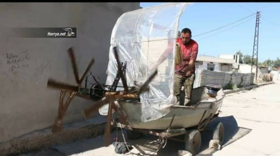 وحول طبيعة عمل الآله بيّن “الياسين”: أنها “مصنوعة من قارب صيد محرك هوندا وجنازير، بالإضافة إلى شفرات موجودة في الأمام، وأنا كوني أعمل ميكانيك متورات، قمت بنزع محرك دراجتي النارية وثبته على قارب صغير، ووضعت شفرات في مقدمة القارب وهي التي تقوم بفرم زهرة النيل وموتها مباشرة”.